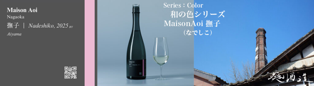 和の色と味わいを重ね合わせる「Color」シリーズ。優美な可憐さと芯の強さを併せ持つ「撫子(なでしこ)」は、華やかな香りとふくよかな味わいを大切にした一本です。MaisonAoiシリーズの中でも最も米を磨いた一本として、愛山らしいふくらみを活かしながら、華やかさの中に上品さと洗練を備えた味わいを目指しました。撫子は、平安時代から親しまれてきた日本の伝統色であり、大和撫子に象徴される、清楚で可憐な美しさを想起させる色でもあります。